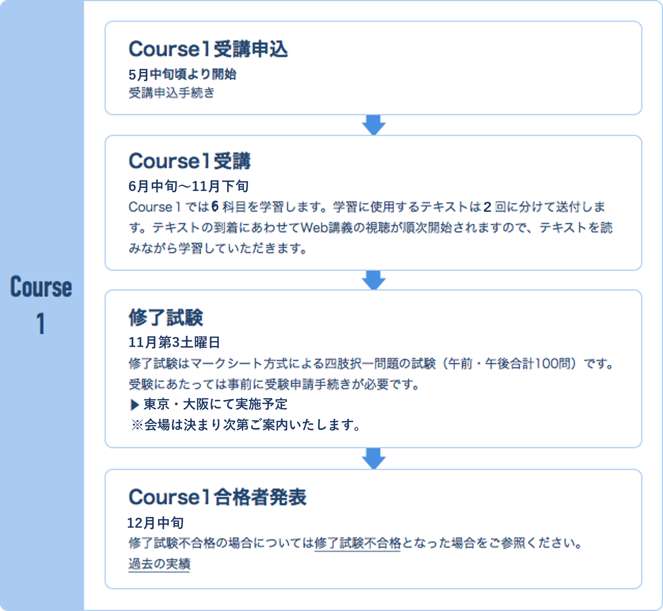 ※Course 1の修了者は、同年度のCourse 2を申込、受講していただきます。所定のCourse 2申込期間内に申込がなかった場合には、Course 1の修了は失効しますのでご注意ください。