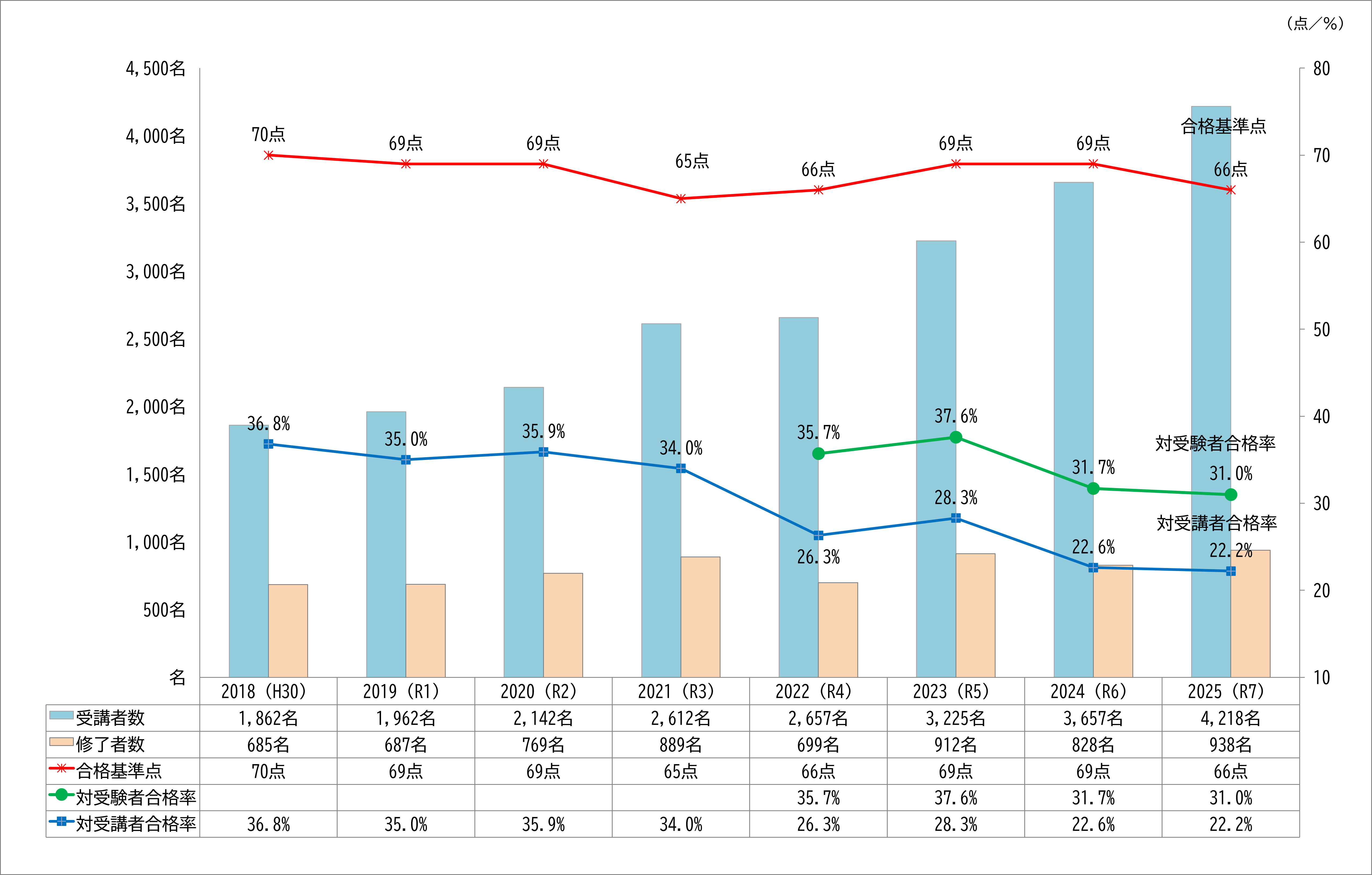 | 受講者数 | 794名 | 906名 | 723名 | 935名 | 850名 |